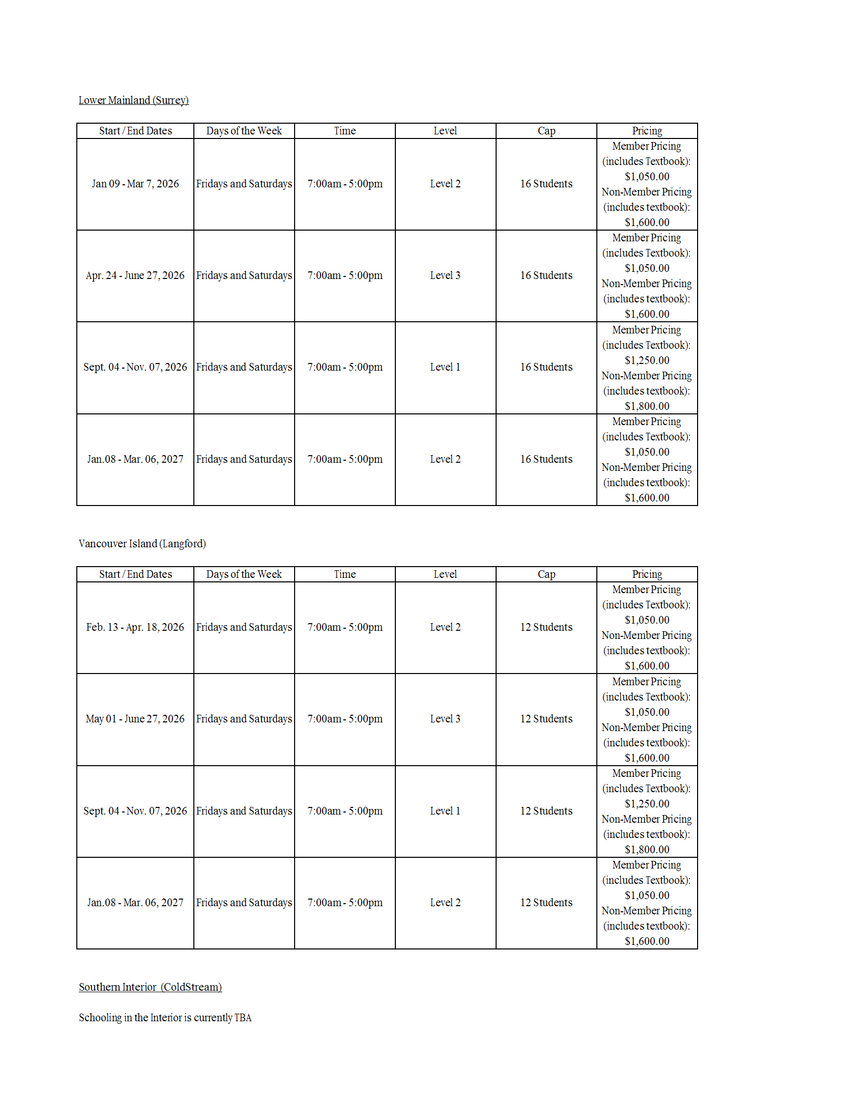 Lower Mainland Level 1 Interior Systems Mechanic Fall Class. For a list of all classes,Click Here